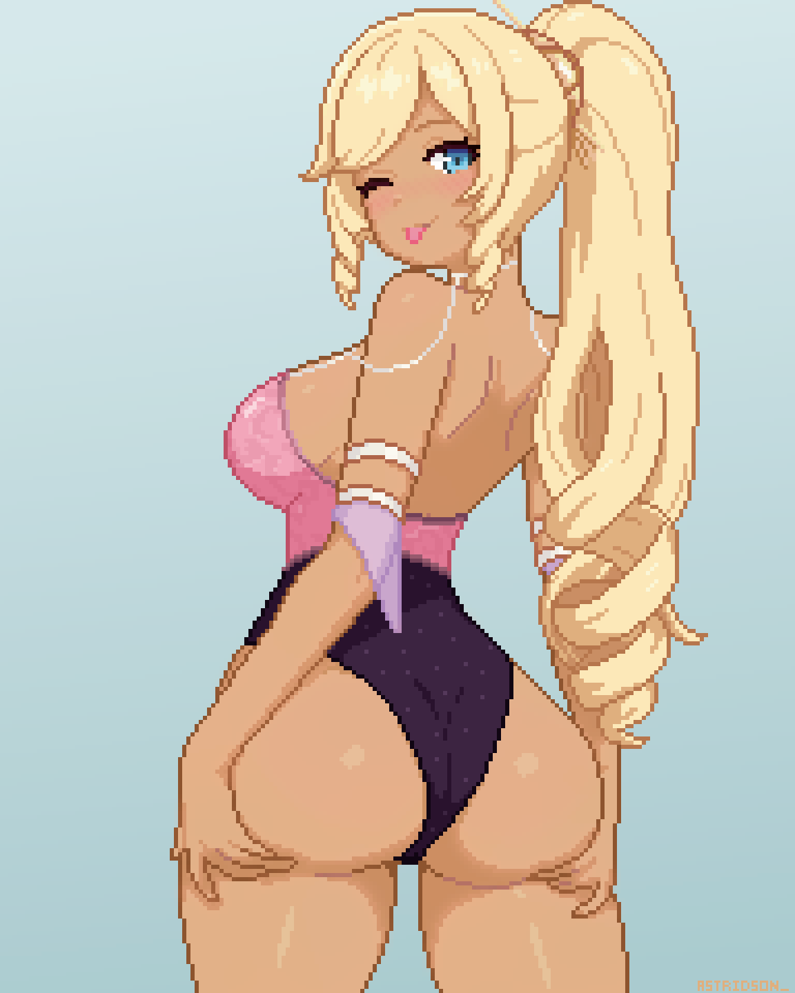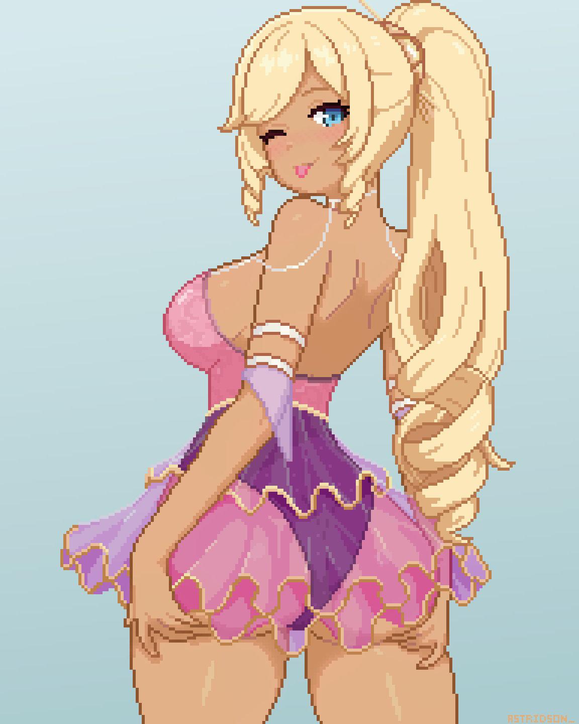 A playful wink Posted on February 22, 2026February 22, 2026 By Astridson Fan art of Olivia Monroe High Res, Pixel Art